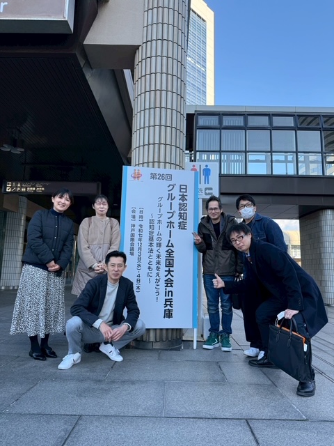 お知らせ 令和7年日本認知症グループホーム協会全国大会に参加しました。 2025.12.10 令和7年12月3日から4日まで、神戸市で開催された『令和7年日本認知症グループホーム協会全国大会」に職員6名が参加しました。青森では今シーズン初の積雪を観測しておりましたが、交通トラブルもなく、充実した研修旅行となりました。 Tweet Share Hatena Pocket RSS feedly Pin it